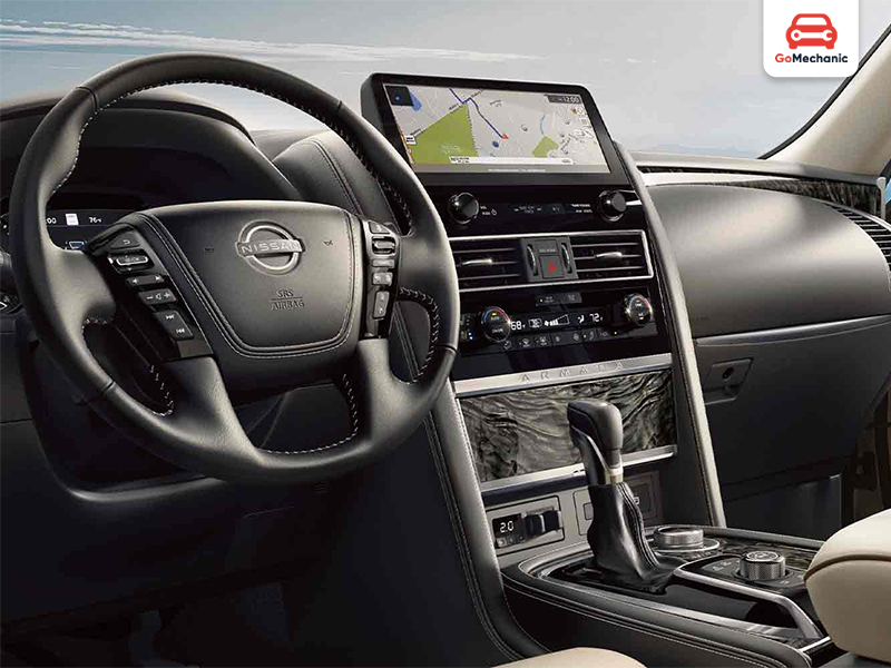 - Nissan Patrol Y63 drive modes: Eco, Sport, Sand, Rock, Mud, Tow